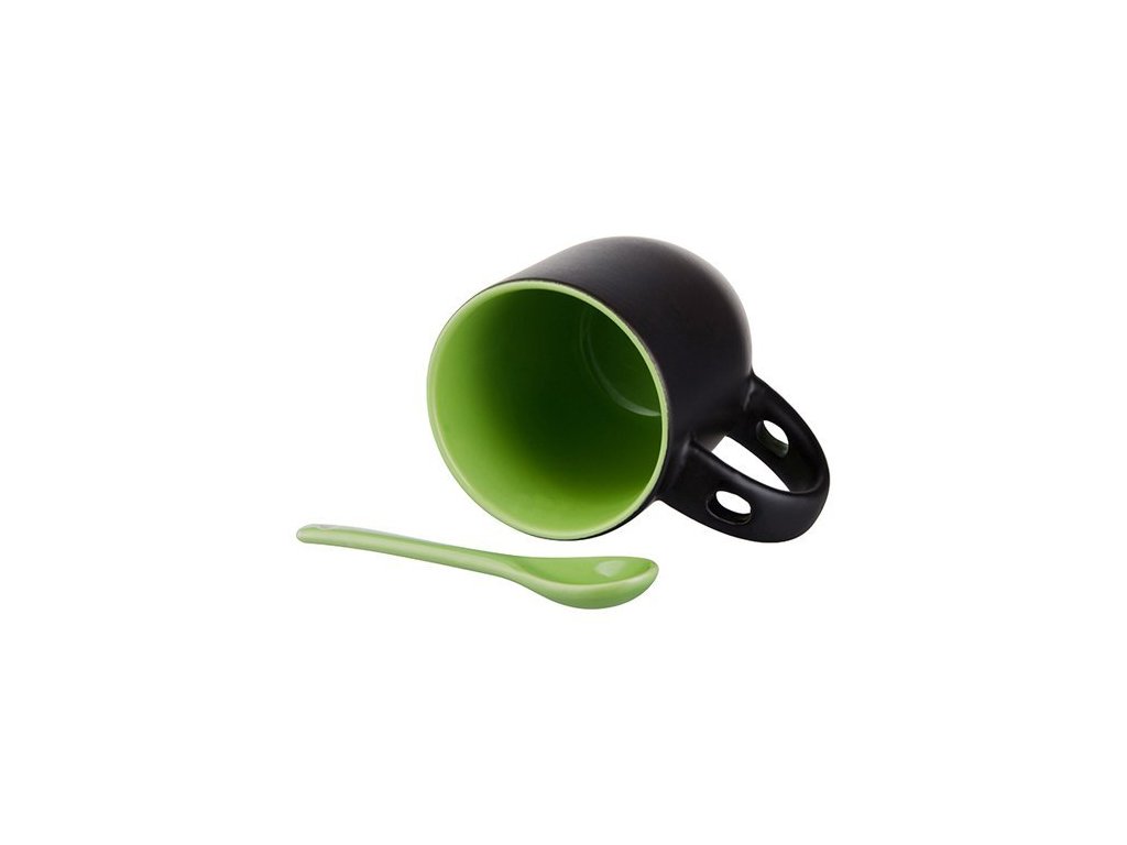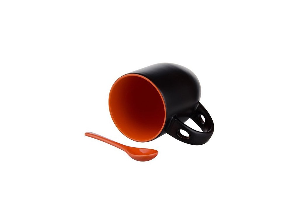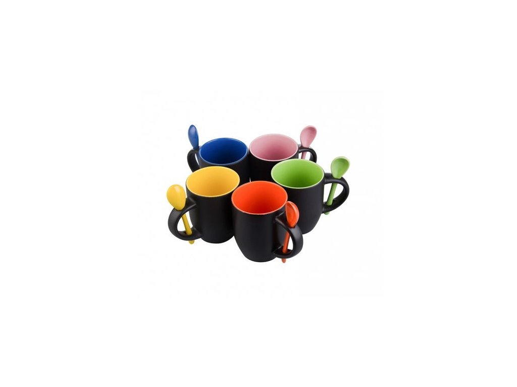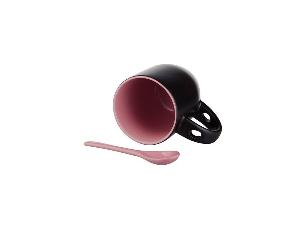 Magický hrnek 330 ml A+ černý matný s barevným vnitřkem a lžičkou