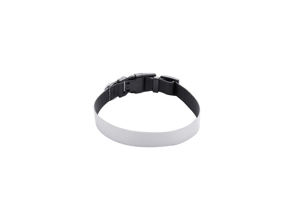 Obojek pro psa vhodný pro sublimační potisk. Lze nastavit a utahovat přes plastovou sponu s kovovým kroužkem.