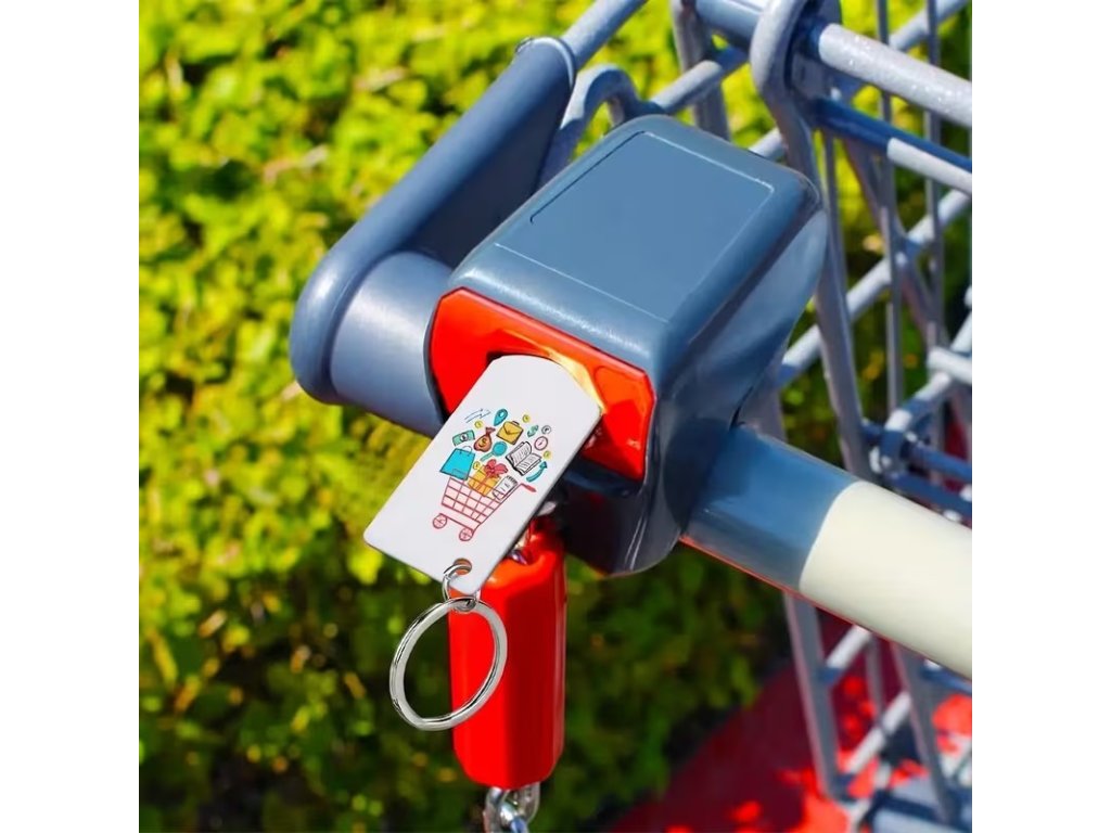 - Jedná se o klíč ve tvaru žetonu, který se vkládá do mechanismu pro uvolnění nákupního košíku.
