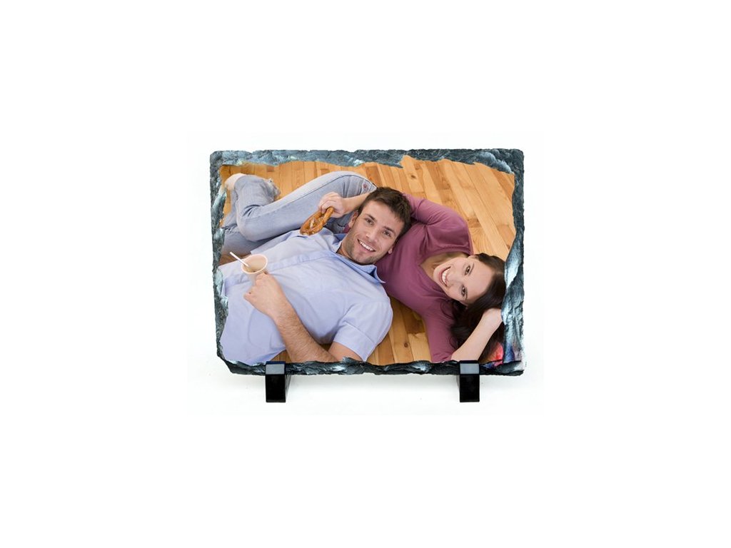 Žulová sublimační deska. Součástí balení je plastový stojan, na který můžete potisknutou desku postavit. Sublimační desky jsou ideální řešení pro výrobu originálních cen, poděkování, upomínkových a dárkových předmětů.