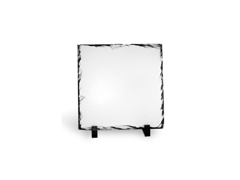 Žulová sublimační deska. Součástí balení je plastový stojan, na který můžete potisknutou desku postavit. Sublimační desky jsou ideální řešení pro výrobu originálních cen, poděkování, upomínkových a dárkových předmětů.