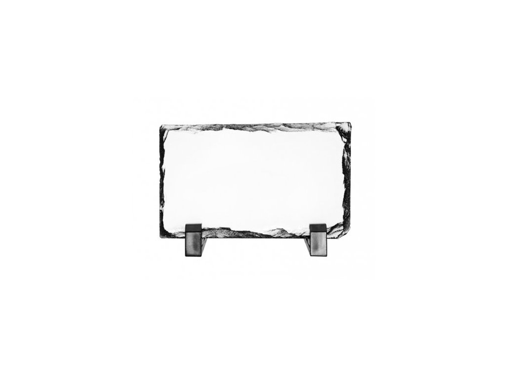 Žulová sublimační deska. Součástí balení je plastový stojan, na který můžete potisknutou desku postavit. Sublimační desky jsou ideální řešení pro výrobu originálních cen, poděkování, upomínkových a dárkových předmětů.